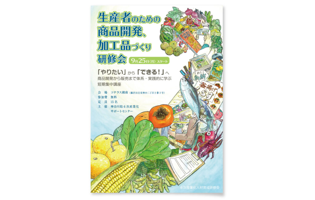 神奈川県の農産物、水産物を中心に講習会の雰囲気を織り交ぜてレイアウトしました。