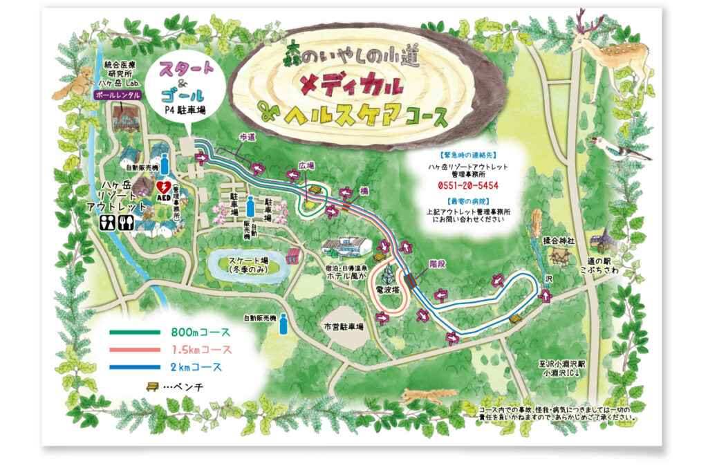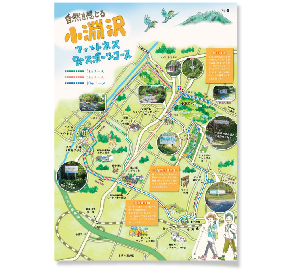 アウトレットモール周辺の森のウォーキングコースを紹介するマップイラストを作成しました。