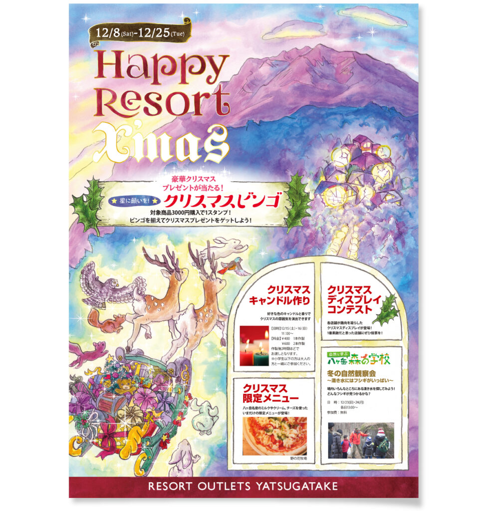 アウトレットモールのクリスマスイベントの販促物のデザインを担当しました。