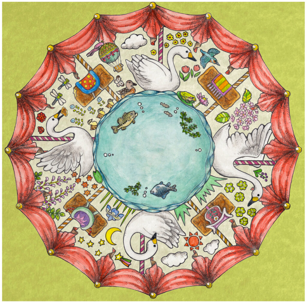 地元の魅力をメリーゴーランド風のイラストにしました。