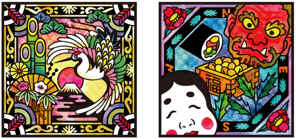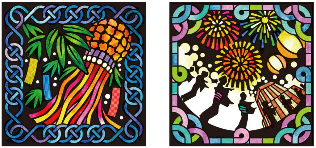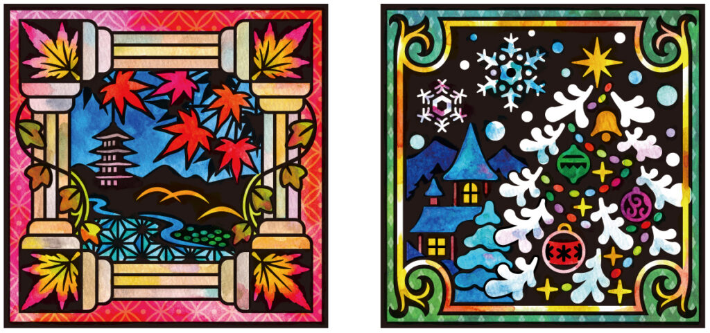 彫刻刀でビニールシートを彫り、ステンドグラスのような仕上がりとなる「シャインカービング」というアートの原画を制作しました。