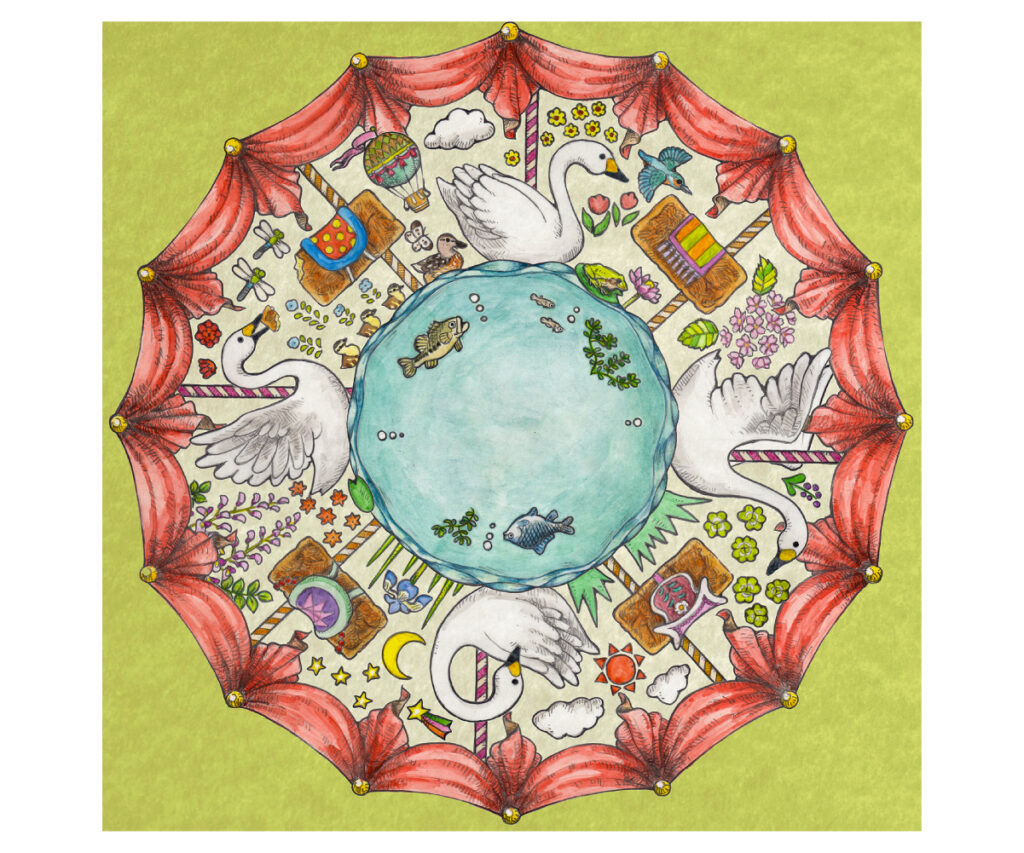 (担当業務:イラスト) パン屋さんのイメージイラストとして制作。 地元の魅力をメリーゴーランド風のイラストにしました。 (納品後方針変更によりリリースはされていません)